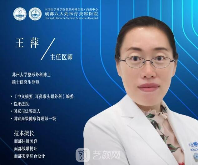 王萍,女,執(zhí)業(yè)醫(yī)師,是一名皮膚激光醫(yī)生、微整形醫(yī)生,目前就職于成都八大處整形醫(yī)院,從事整形美容工作多年,在面部美容、私密整形美容等方面造詣深厚,擁有豐富的臨床經驗和嫻熟的手術技巧。