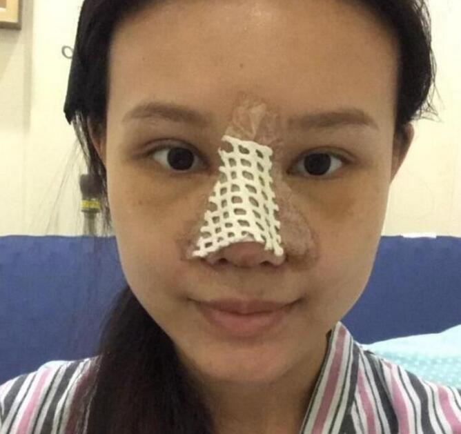 第三天了,還纏著紗布呢!看不到鼻子的形態(tài),只是隱約感覺到鼻子確實挺起來了