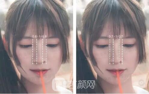 鼻翼的寬度應(yīng)該比鼻梁寬度要略窄一點。一般看起來是0.8:1:0.8就差不多了。那這個時候估計就有人要問了,是不是鼻翼越窄越好呢?